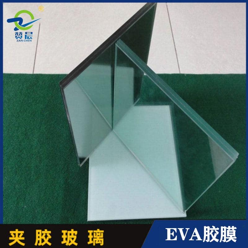EVA夹胶玻璃胶片在受热前为两表面均呈浅的半透明薄膜,在受热固化后则具备非常杰出的透明性以及与玻璃间的产生非常高的黏结强度。能适用于各种玻璃的夹胶工艺,如压花玻璃、钢化玻璃、弯曲玻璃等等、建筑夹层玻璃、装饰夹层玻璃,防盗玻璃、塑料夹层板。