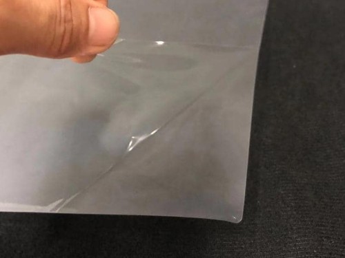 产品形态:薄膜+PE,表面为雾面,热贴合后呈透明的状态。