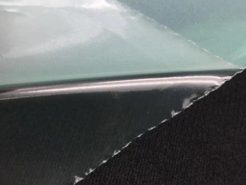 产品形态:薄膜+PE,表面为雾面,热贴合后呈透明的状态。